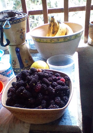 Por otro lado, como nosotros vivimos en el campo y tenemos un terreno cultivable, lo aprovechamos y sembramos allí algunas hortalizas. En la propiedad tenemos varios árboles frutales; cultivamos Moras, Naranjos, Limones, Mandarinos, Guayabas, Cambures (Bananas) y otras ricas frutas que complementan nuestra dieta diaria.