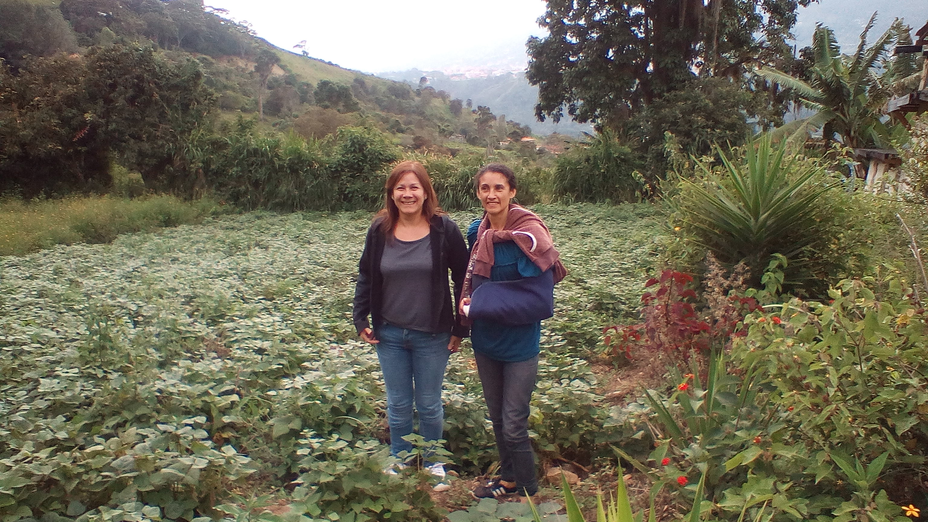 En la foto de abajo aparecen dos de mis hermanas en un cultivo de frijoles (en Venezuela los llaman “caraotas”), que hay cerca de la casa.