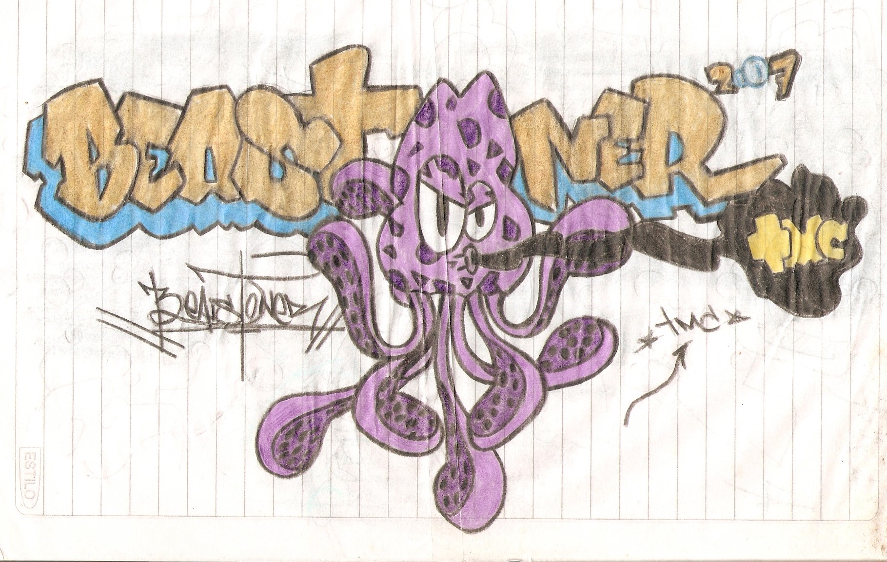 - Hola que tal comunidad?!!! Por aca les dejo un Segundo post en un mismo dia. Este es de mi epoca en la que era grafitero de casa ajajaja ya que nunca sali a rayar en la ciudad. Este fue una gran epoca en la que solia descargar o drenar mis emociones mediante paple y lapiz en cualquier superficie que me encontrara al estilo callejero. Espero les guste un poco mas que el primer post que publique temprano, no me fue muy bien con ese jajaja... Por favor aponyenme con su like y muy pronto estare publicando piezas de los mentos en los que estuve en mi tope mas alto de arte.