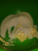 Paso 1: En un bol o taza onda grande, agregamos la mantequilla y el azúcar, luego mezclamos.