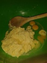 Step 2: After the sugar and butter are already united and compacted, we add the 4 eggs and mix.