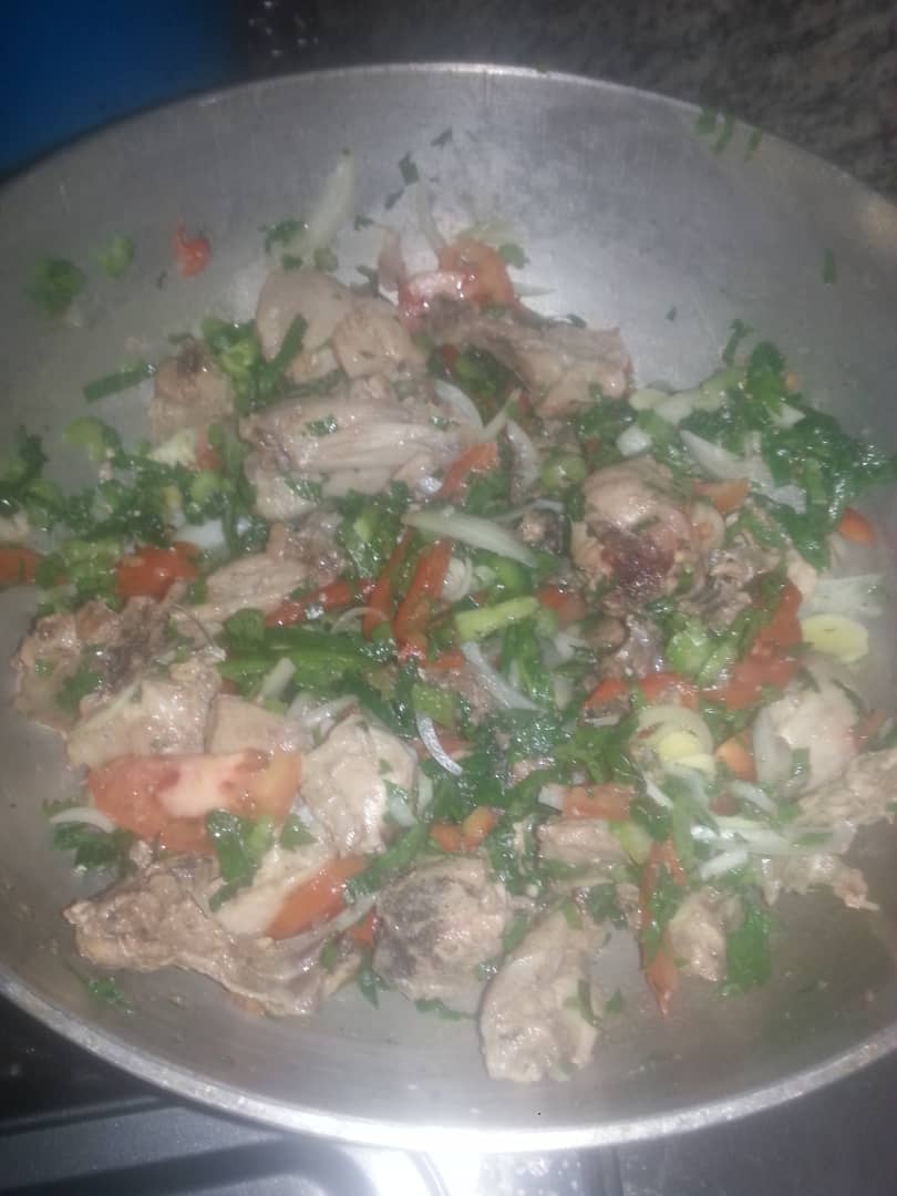 Cuando veamos que el pollo esta en el punto que queremos le incluimos todas las verduras ya previamente cortadas
