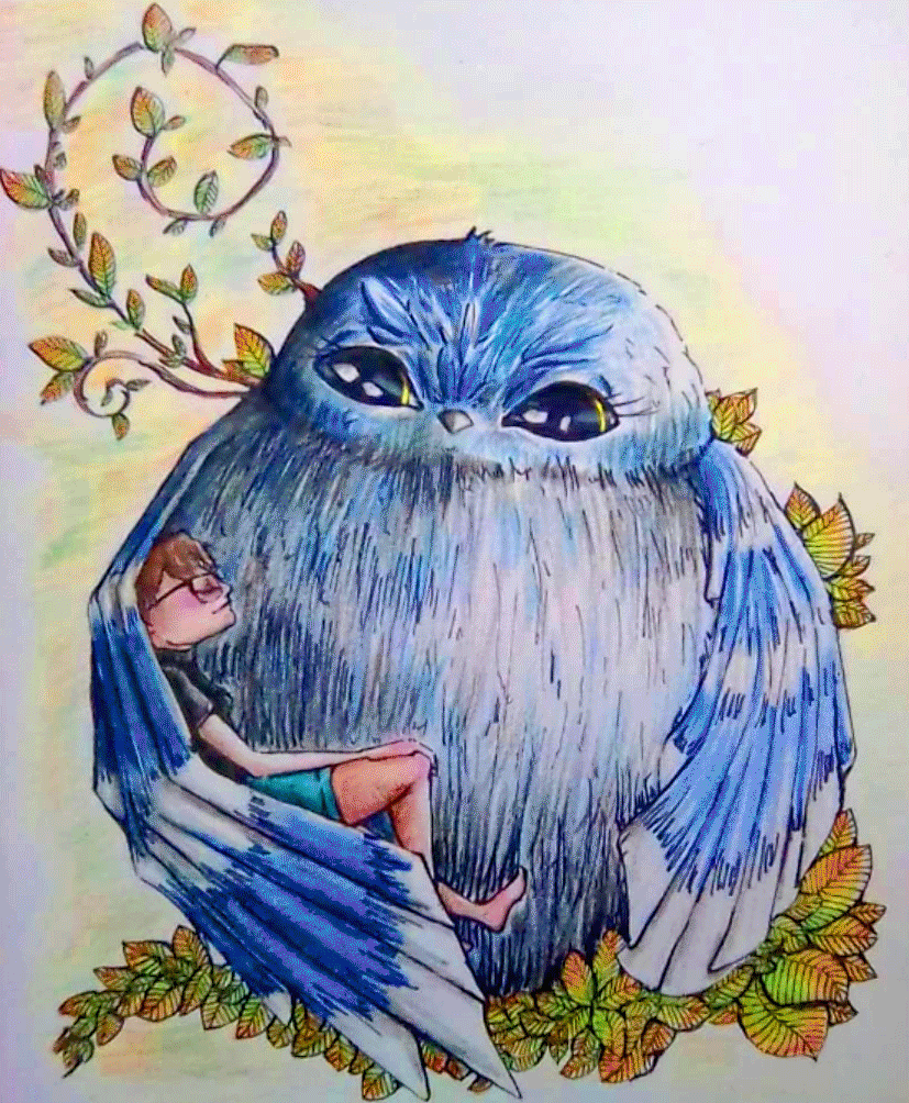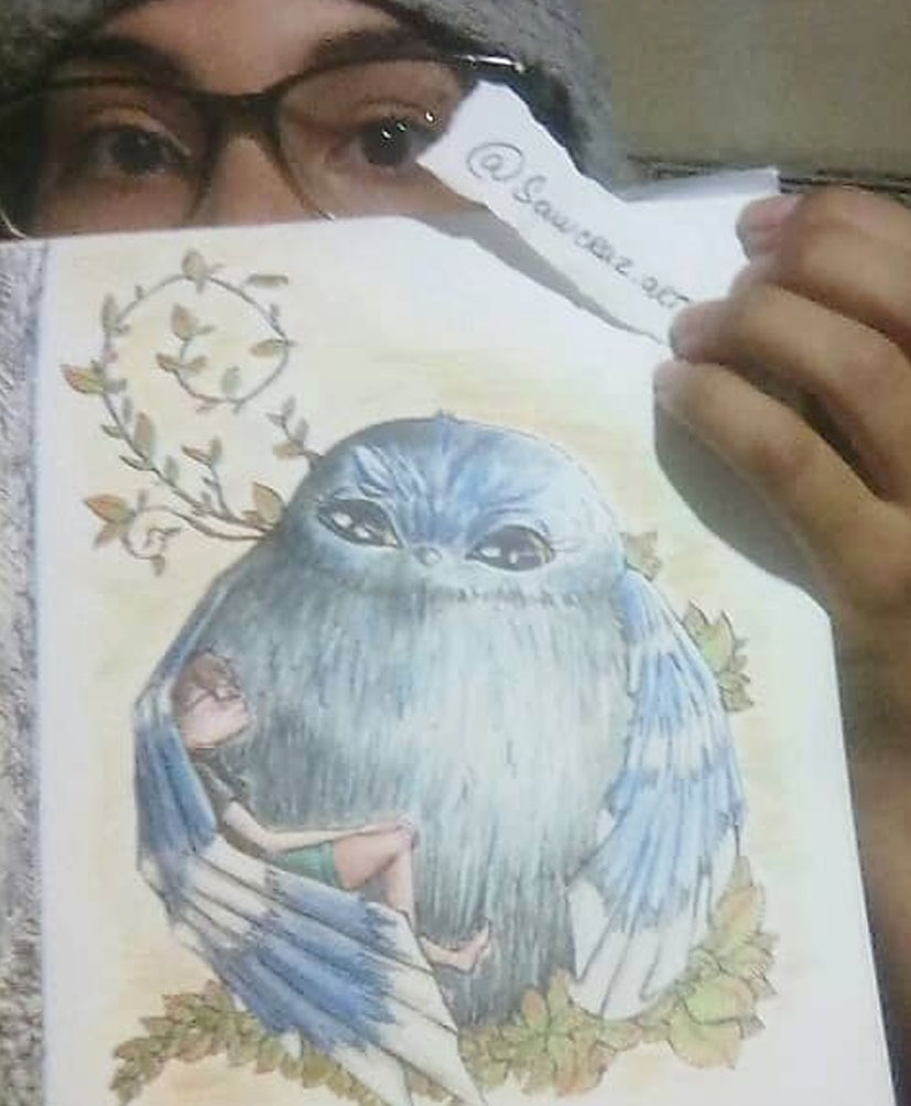Me inspiré para esta ilustración en una amiga que ahora se encuentra fuera del país, la cuestión fue que un pajarito se posó en sus brazos tan solo para dormir (así o más tierno), esa historia me conmovió demasiado y, pues, como le dije que iba a hacerle un dibujo decidí tomar esa bonita historia para crear esto.