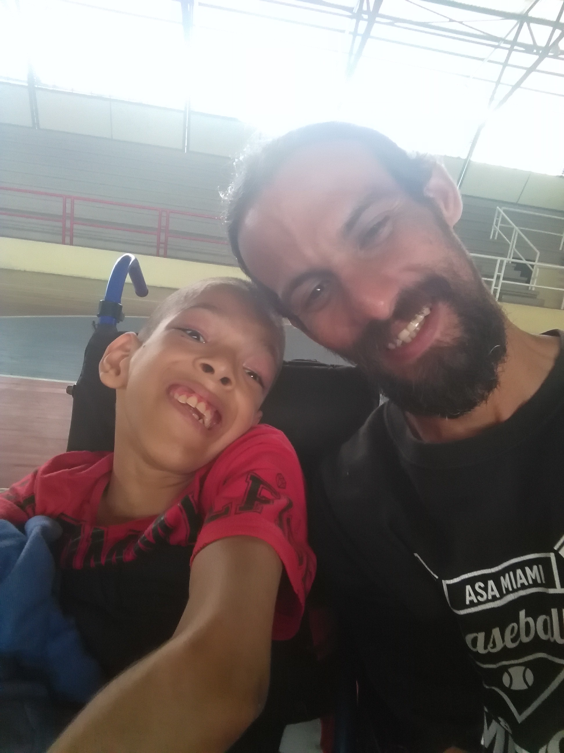 José Gregorio y mi persona, este jovencito en nuestra nueva arma, un franco tirador camuflajeado en esta guerra jejejeje son grandes mi atletas de Boccias dios los bendiga.