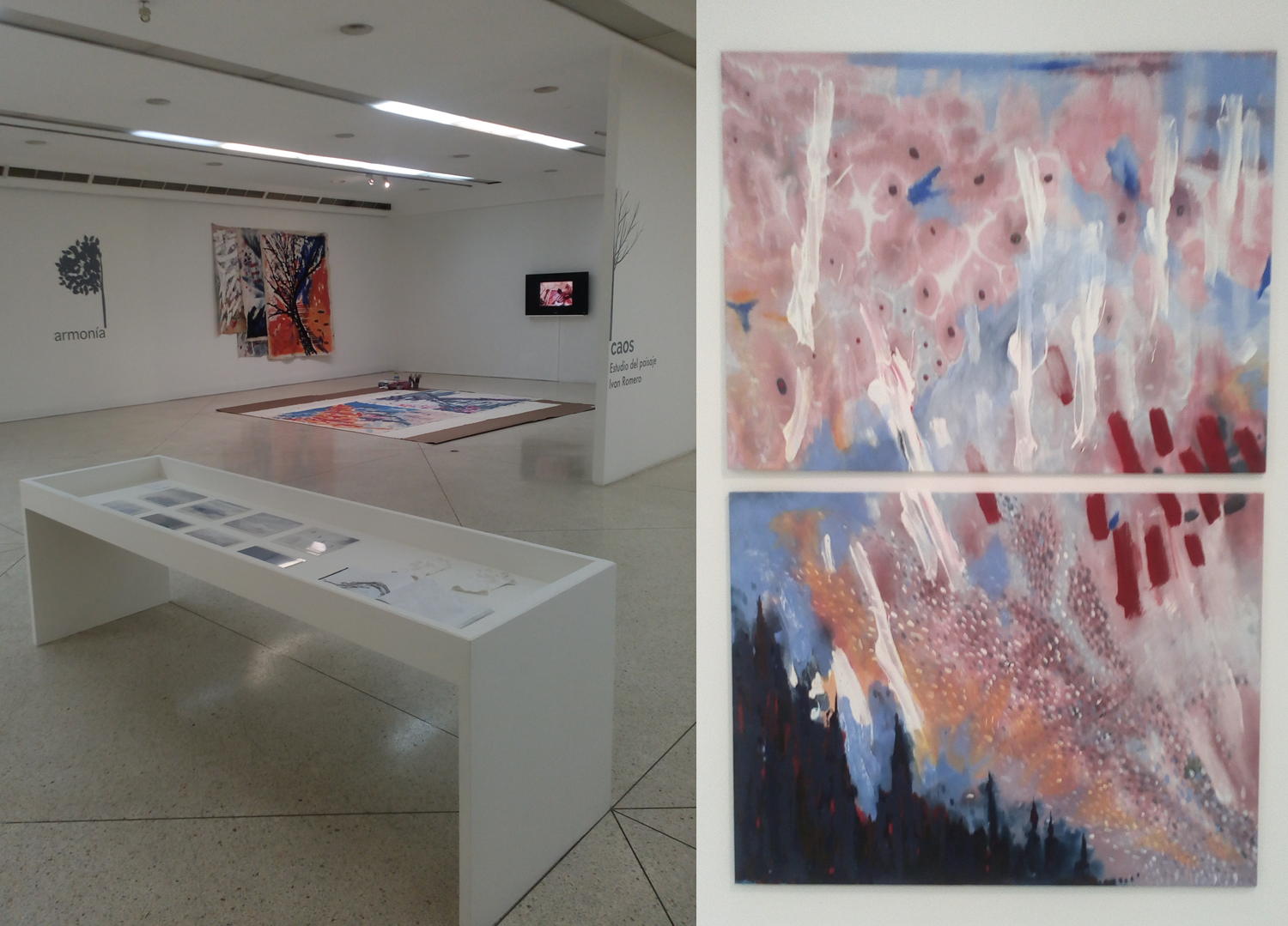 Les presento mi sala favorita. En el televisor se puede apreciar un video de como el autor crea sus paisajes. Me gusta como combina el estudio de la naturaleza con el arte abstracto. Mi obra preferida de su exposición (a la derecha) se llama Nacimiento y la realizó en el 2.013 en acrílico sobre tela.