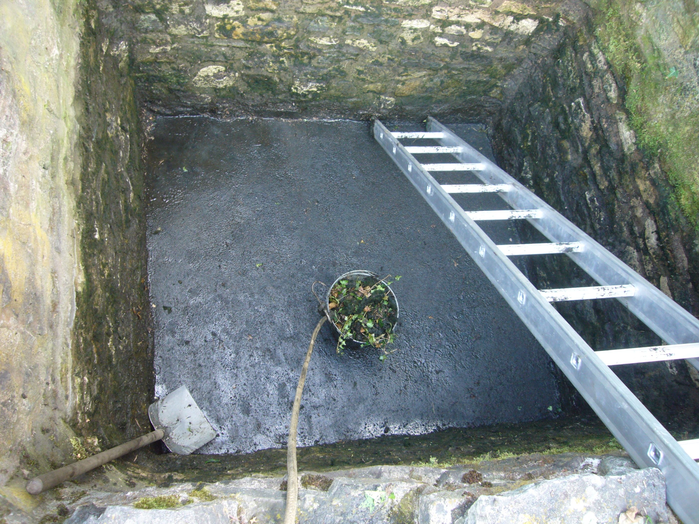 Tady vidíte tu vrstvu smrdutého bahna, která tam vznikla tlením napadaného listí a biomasy za několik let. No vzhledem k tomu že jsem na to byl sám, tak to byla docela taková rozcvička. Není nad přirozenou posilovnu zahradních prací. :) Slést dolu po žebříku naplnit kýbl, vylézt, vytáhnou kýbl dva půl metru nahoru a vyklopit ho do kolečka. A jednou za tři kýble, odvést kolečko na kompost. No než se tělo rozhýbalo od toho věčného pracovního sezení u kompu tak to trvalo. Musel jsem si dát několikrát pauzu. A pak jsem věděl že mají přijít bouřky takže kolem čtvrté jsem se dostal do rytmu a už to jelo, hlavně to bahno začalo ze dna ubývat a to vás taky povzbudí. Když už jsem to skoro vybral tak jsem se pustil do škrábání řas na zdech a stříhání břečťanu. No nakonec jsem to po sedmé dodělal jak vidíte na poslední fotce. A musím říct že mě to tak zvedlo náladu, jednak asi i ta námaha jak rozproudila moje sedavé tělo tak i to že jsem to měl hotové. Ještě teda zbývá až oschnou pořádně okartáčovat stěny a opravit spáry které protékají, ale to už bude na jiný den.