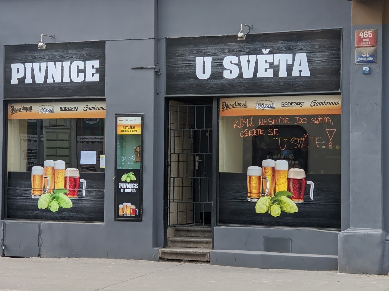 Je to takový ten druh podniku kam chodí na pivo lidé už od rána. No a dnes by měli mít správně zavřeno. No oni mají, mají zavřenou mříž. Ale uvnitř hafec štamgastů holdujících pivu.
