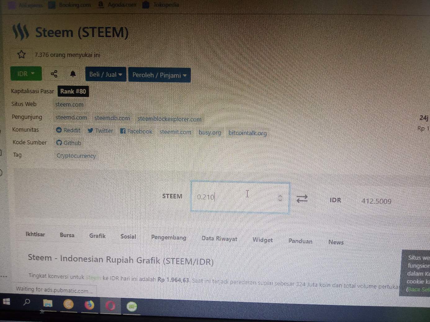 Menurut kurs @coingecko hari ini 0,210 setara IDR 412,50 maka sejumlah itu segera dimasukan ke panitia