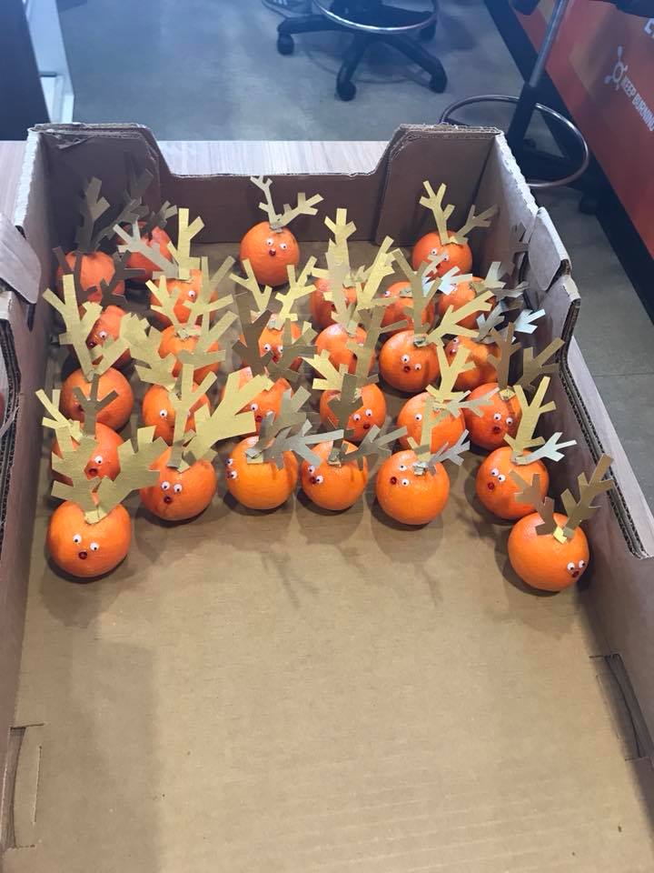 My husband and I are a bit different when it comes to Christmas! We have family all over the world, so, our Christmas extends through January traveling to visit everyone. This year, we fly to Canada to spend it with his sister, and after that, my parents, daughter, and grandson fly into Vegas and we do another Christmas in January. SO, Jamie (My husband) and I, got the gift of health for each other and bought a membership to Orange Theory Fitness for each other!! (These are the Orange Theory Reindeer - Free Range Orangelopes!).