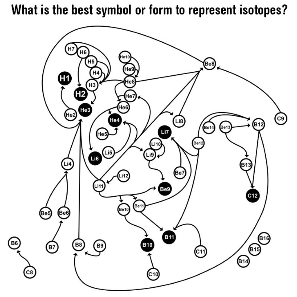 Interfacing particle #physics information into a spiral. A chart of nuclear #isotopes that displays stable and non stable isotopes and path of decay. Black circles are stable isotopes that do not decay. White circles are non-stable isotopes. Notice how some non-stable isotopes such as Lithium 11 have multiple paths of decay. "To make things easier to understand", this is the challenge of all languages and #philosophy. The Chromalendar is an advancement of language and how we represent knowledge.