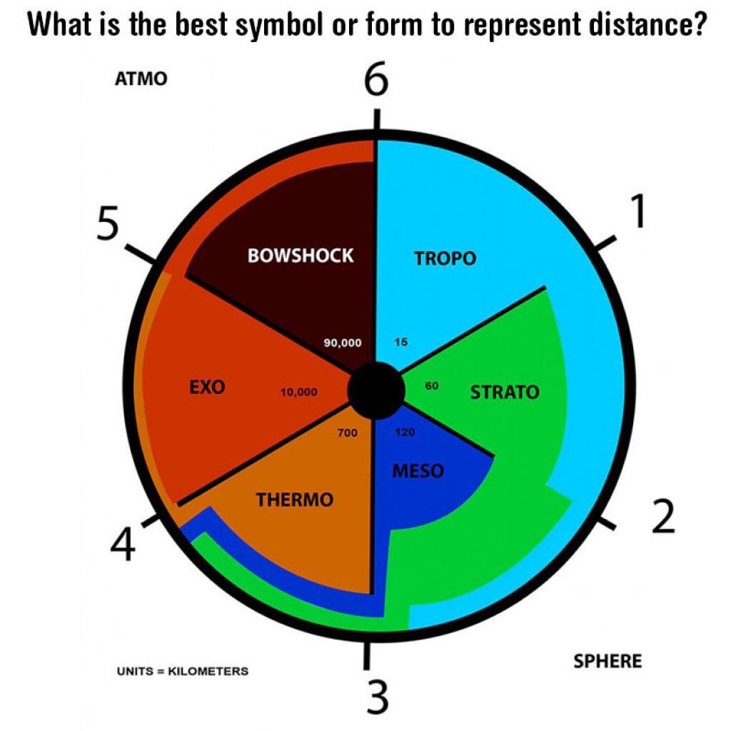 What is science? A very broad question. One aspect of science is precision. No area of science is more concerned with precision than #chronometry, the accurate measure of time. In this example , the interface is describing the atmosphere, displaying the distance by ratio instead of the precise measurement of a kilometer. The Troposphere is 15 kilometers, represented as the blue in the first pie section, next it shows the Troposphere in ration to the Stratosphere, and on and on. Describing the distances of sections of the atmosphere by ratio.