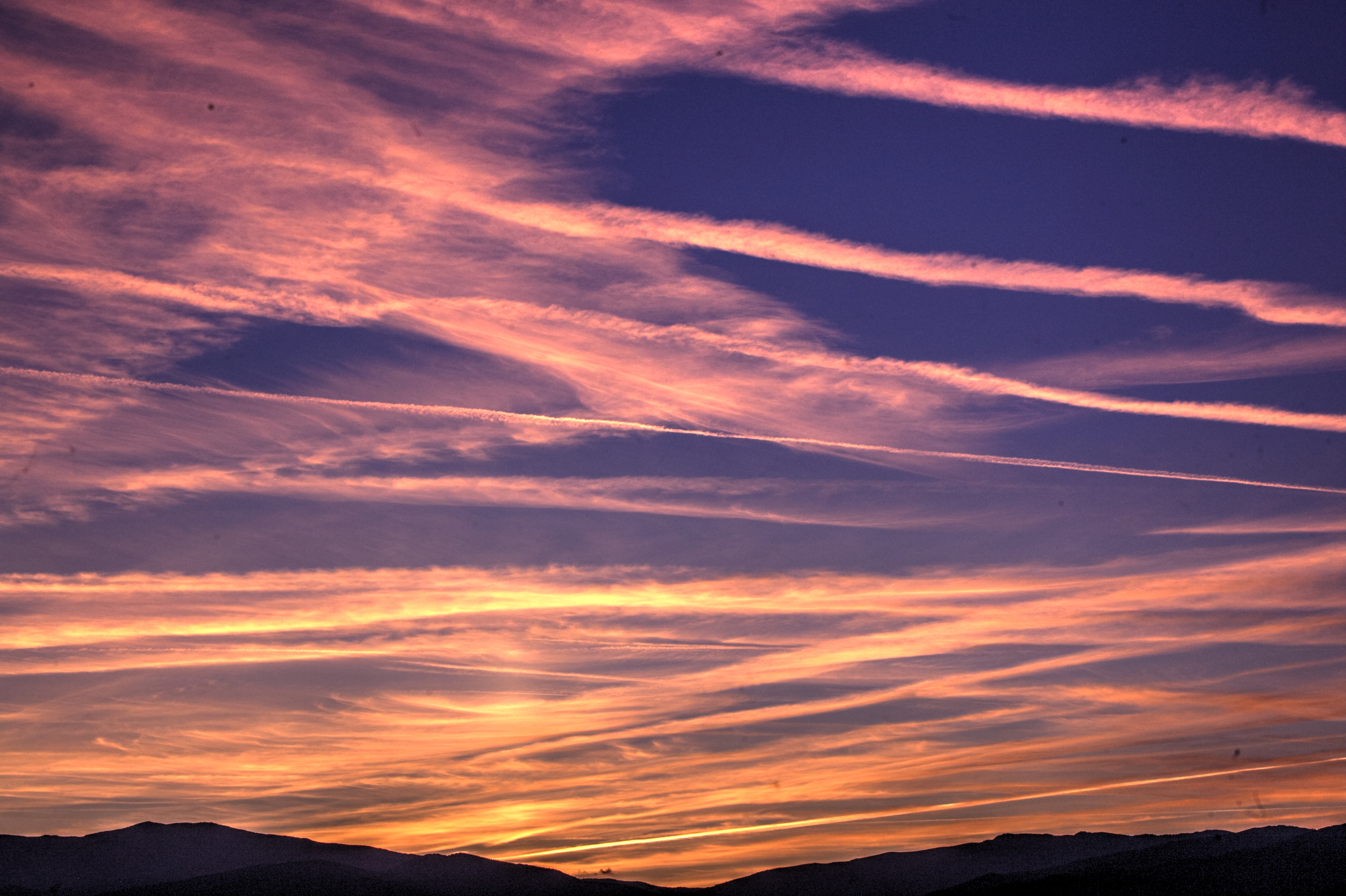 This region is famous for its cloudless skies yet most evenings this is what we see. Planes have been making this mess all day.