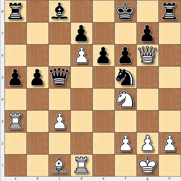 In a somewhat chaotic lightning game, the position shown in the diagram below emerged, in which I didn't miss the opportunity to secure a clear advantage for white.