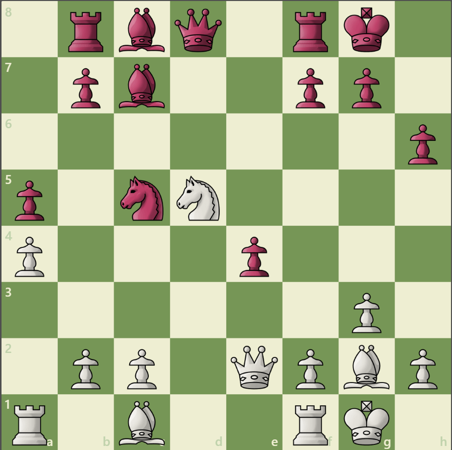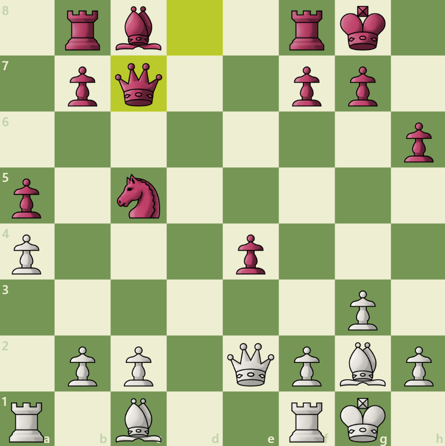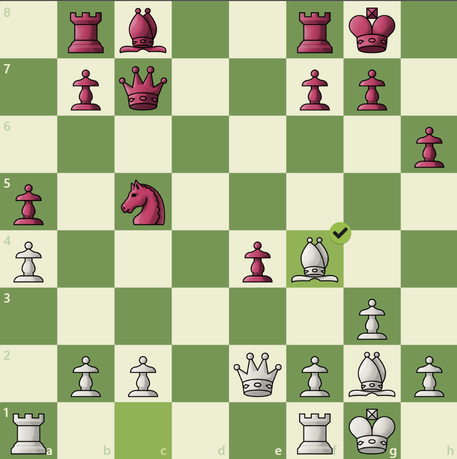 White trades minor pieces, forcing Black's queen on a dangerous diagonal. Can you find a skewer that wins material?