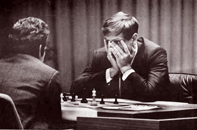 (This is not a movie scene, but an actualy photography of the Fischer in what appears very stressful moment during the Match of the century)