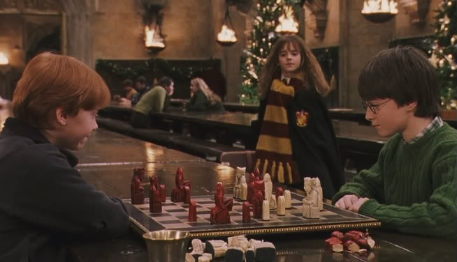Because when they aren't saving the world, learning the spells or having a confusing mixes of feelings typical for teenagers, the heroes of the story like to play the wizard chess in their free time.
