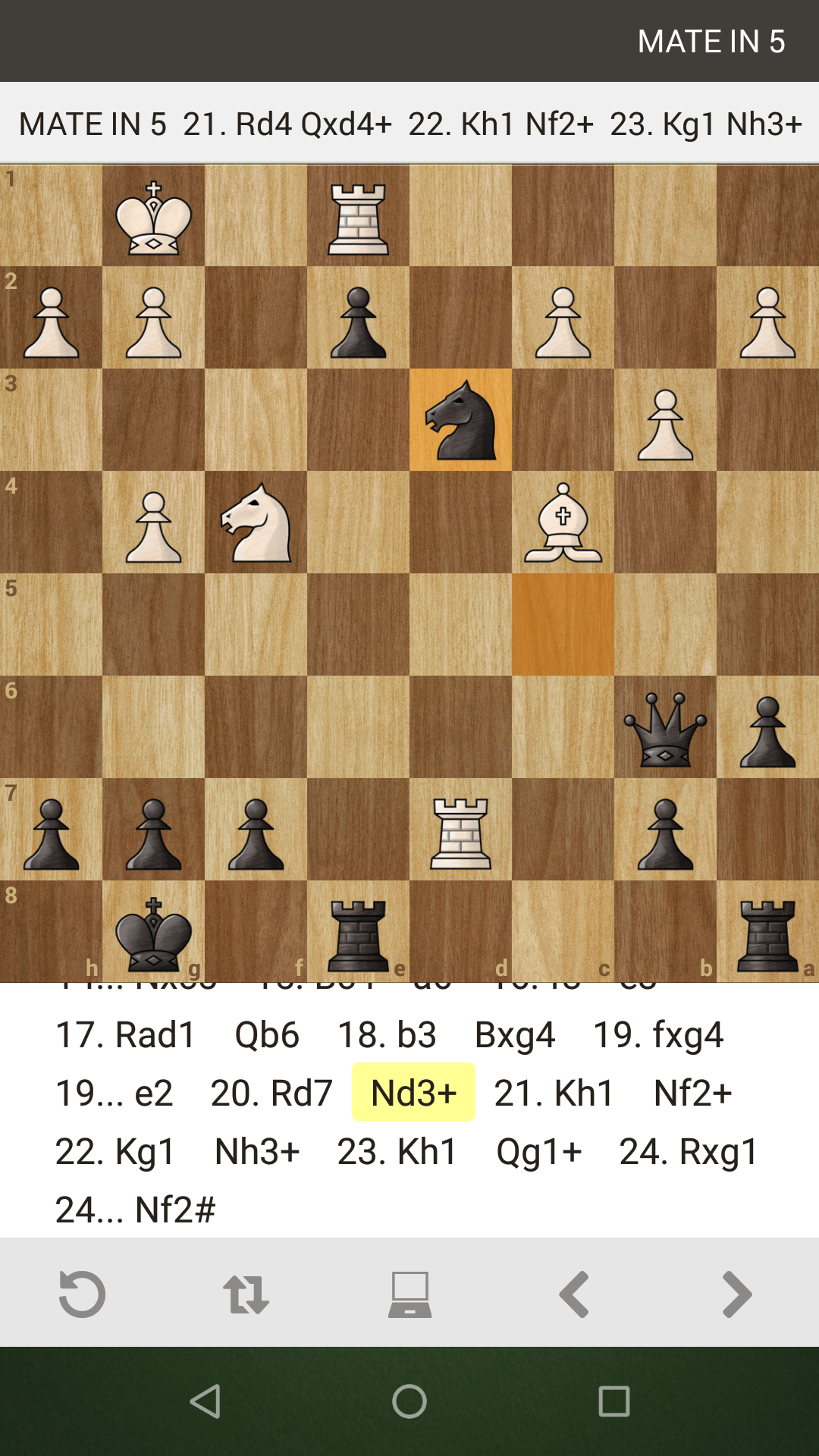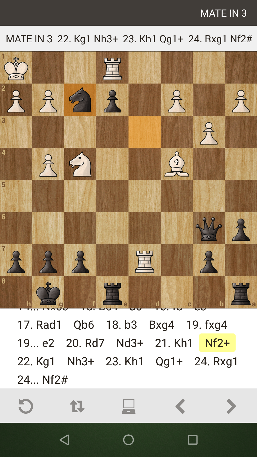 I've had this shown to me on chess tactics apps but this is only the second time I've been able to use this sequence to force a mate in a real game. This was while playing somebody in the Chess.com app. These screenshots are from the self analysis mode after the game was finished. I'm playing Black.