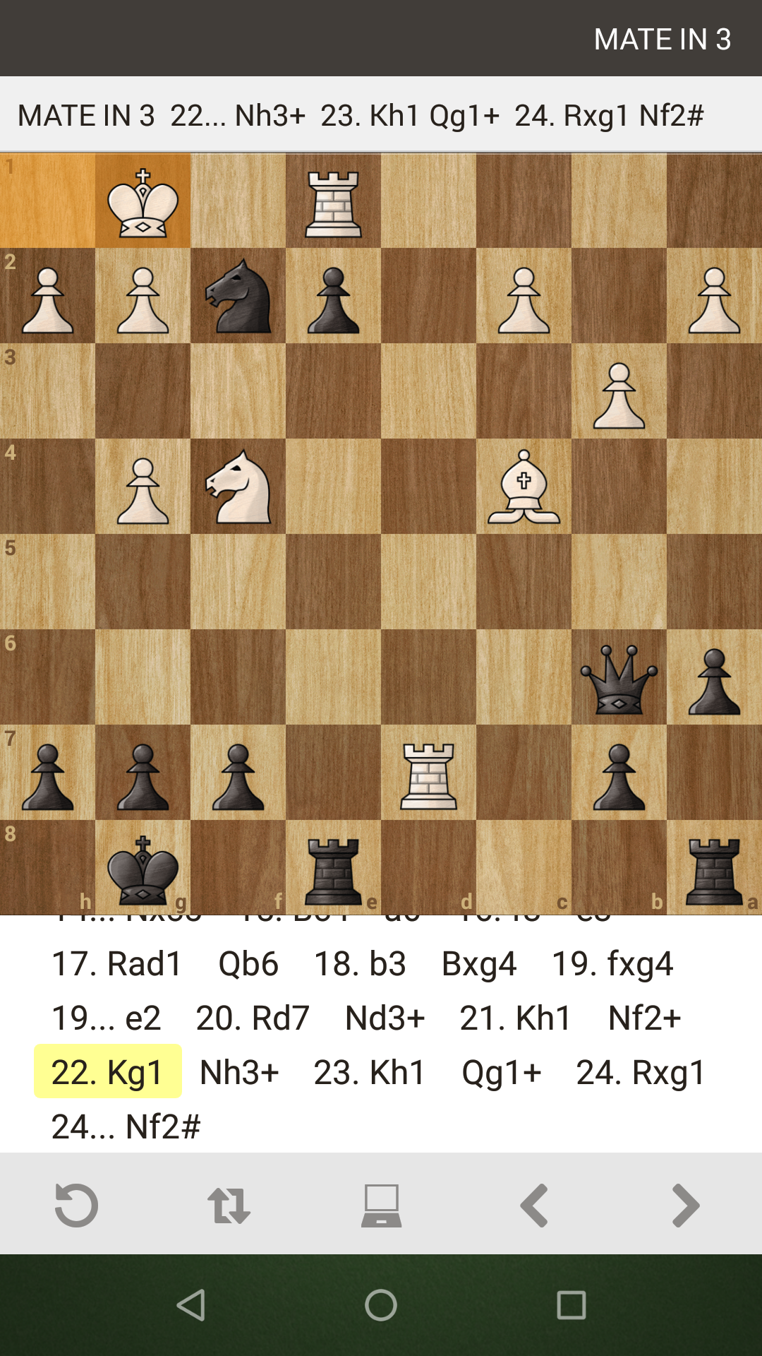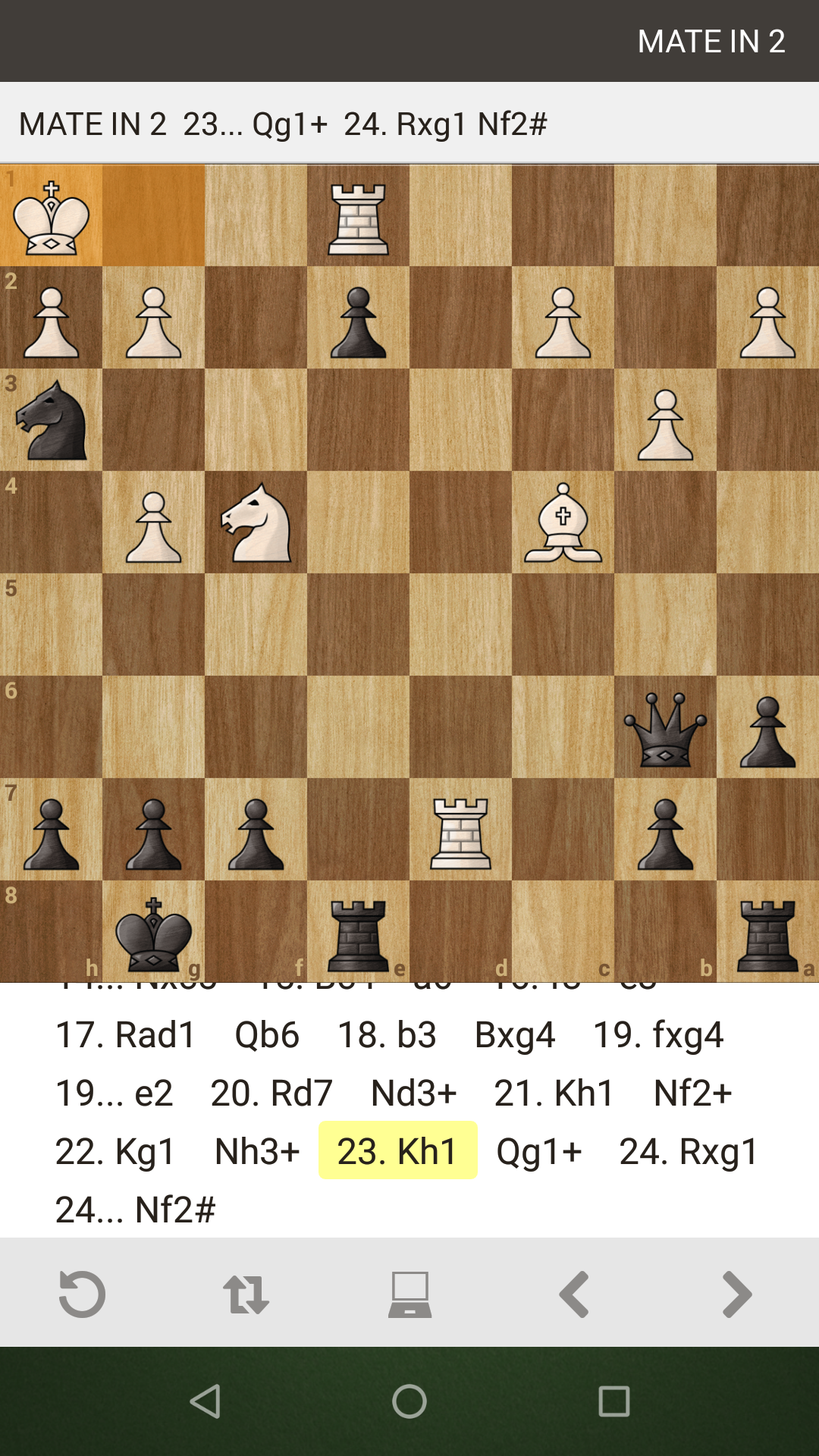 The king once again has nowhere to go except h1.