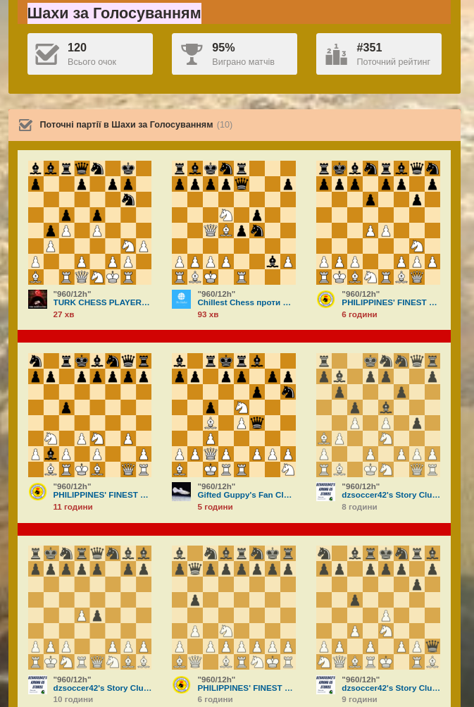 | Клюб на клюб, раён на раён, парний хід у дењ. Кожен з 139+ має право пересунути фігуру, за що отримує апи чи виговори. Тож краще спочатку це робити в блогчейні, аж потім на чес-комі, в будь-якому випадку зараховуються варіанти за посиланням. | Club to club, district to district, double move per day. Each of the 139+ has the right to move the figure, for which he receives "ups" or reprimands. So it is better to do it first in the blogchain, and then on chess.com, in any case, the options are credited by the link. |