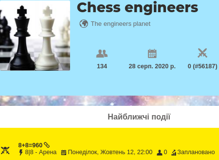 | Клюб на клюб, раён на раён, хід у день. Кожен з 89+ має право пересунути фігуру, за що отримує апи чи виговори. Тож краще спочатку це робити в блогчейні, аж потім на ческомі, в будь-якому випадку зараховуються варіанти за посиланням. | Club to club, district to district, move a day. Each of the 87+ has the right to move the figure, for which he receives "ups" or reprimands. So it is better to do it first in the blogchain, and then on chess.com, in any case, the options are credited by the link. |