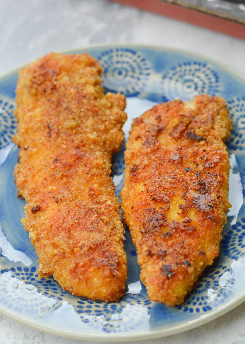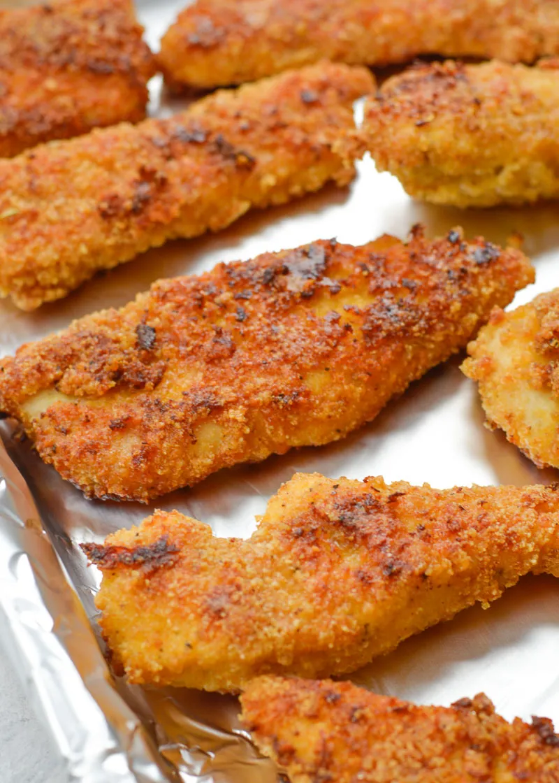 Then simply decide how to cook them! These low carb chicken tenders can be made in the oven, or an air fryer. You will find all of the specific cooking information in the recipe card below, but each method has its advantages. When cooking in an oven you can cook a large batch at once, which makes things easy, but does take longer.
