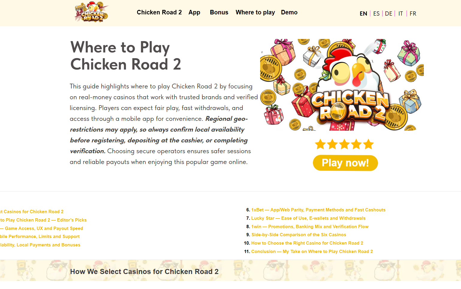 I totally agree with the point about choosing secure operators that really makes or breaks the experience. I recently checked out chiken-road-2.com/where-to-play and it turned out to be a solid resource. Not only did I find trusted platforms, but I also ended up with one of my best results thanks to the smooth process and fast payouts. If anyone’s still unsure ! Where to Play Chicken Road 2, I’d honestly say that’s the place to start. It saves a lot of guesswork and keeps the focus on enjoying the game instead of stressing about where to sign up.