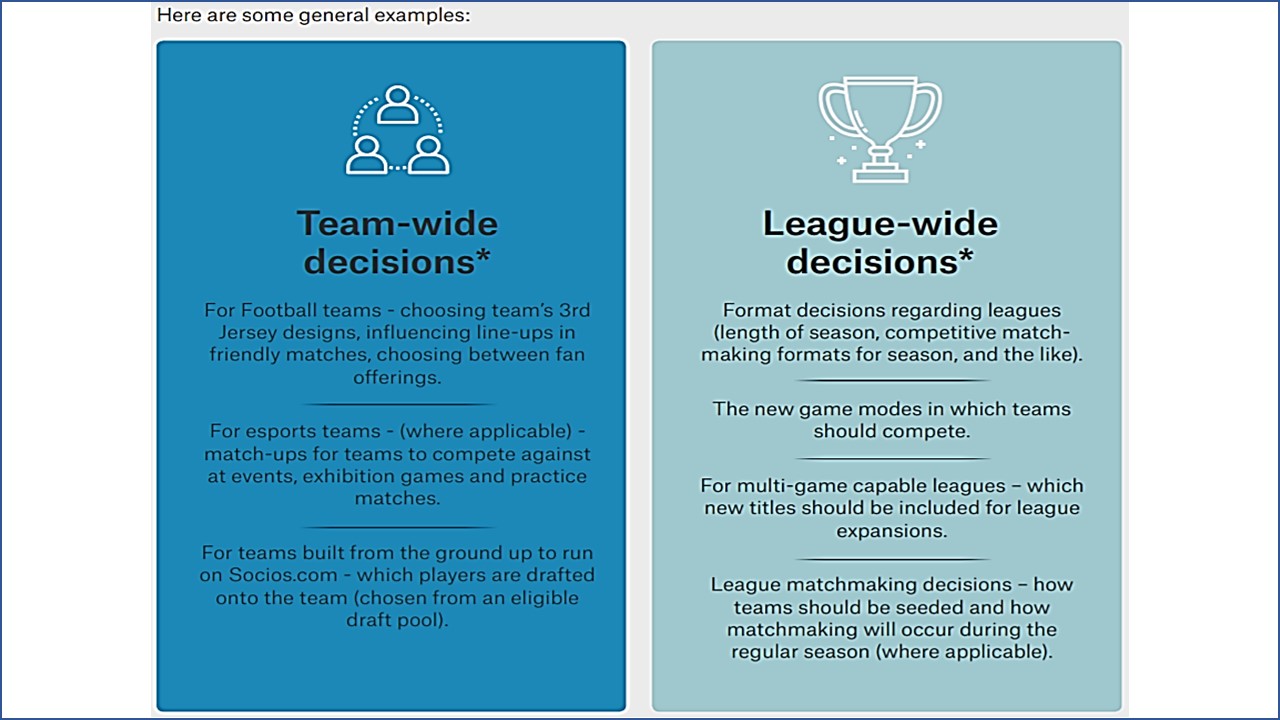 The power of decision making was quite centralized till now with the owners of teams (or game developers) and yet there was clear realization that it is the fans who really makes a team or game popular. As such, though team owners and game makers were ready to transfer some portion of decision making to fans, there was no robust system to enable this. This is where chiliZ helps by bringing the Socios.com platform and makes the delegation of decision making power to fans world-wide.