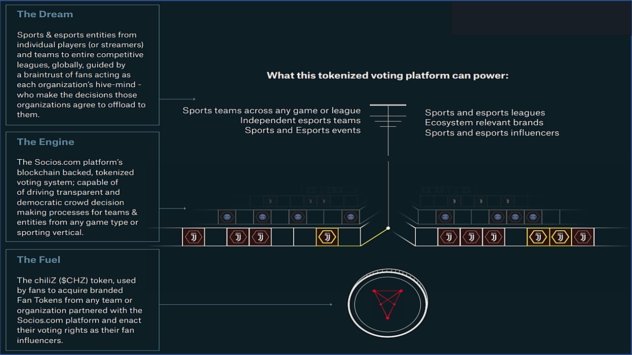 We know that chiliZ powers the Socios.com platform deploying user tokenized voting rights which are executed through smart contracts. The idea is so interesting that it turns the team management exercise into an entertainment value for fans because of the gamifying of voting rights into a trading and re-trading experience. The platform can power existing and future sports and esports team.