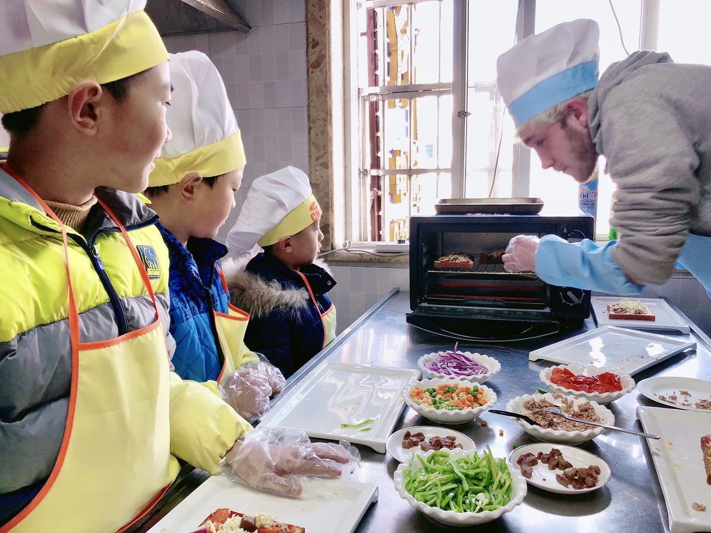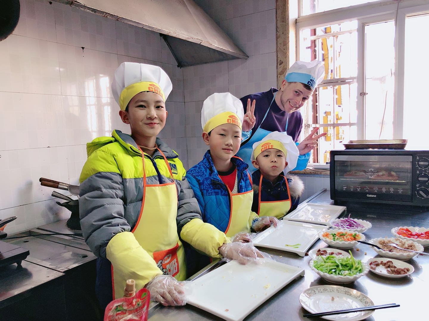 Making pizza with the kids in China!