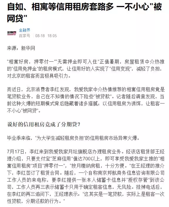 然后,中介和租客联系,号称押一付一甚至押0付一来吸引客源,只需要一点服务费就可以,通过种种诱导让你签了合同后,你突然发现,你和一家XX金融公司产生了联系,每个月的租金不是打给房东的,甚至也不是打给中介的,而是需要打给这家金融公司的,然后你的服务费,也是交给这家金融公司的。