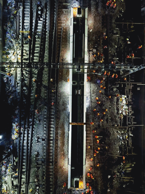 -- -- --英媒中所提到的是福建省龙岩市南龙火车站,这个巨大的项目动用了7列火车和23台挖掘机,1500名工人分成7个组,同时承担7项任务,仅用9小时便完工,对接丝毫不差。