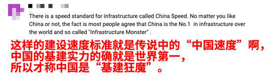 “这样的建设速度标准就是传说中的‘中国速度’啊,中国的基建实力的确就是世界第一,所以才称中国是‘基建狂魔’。”