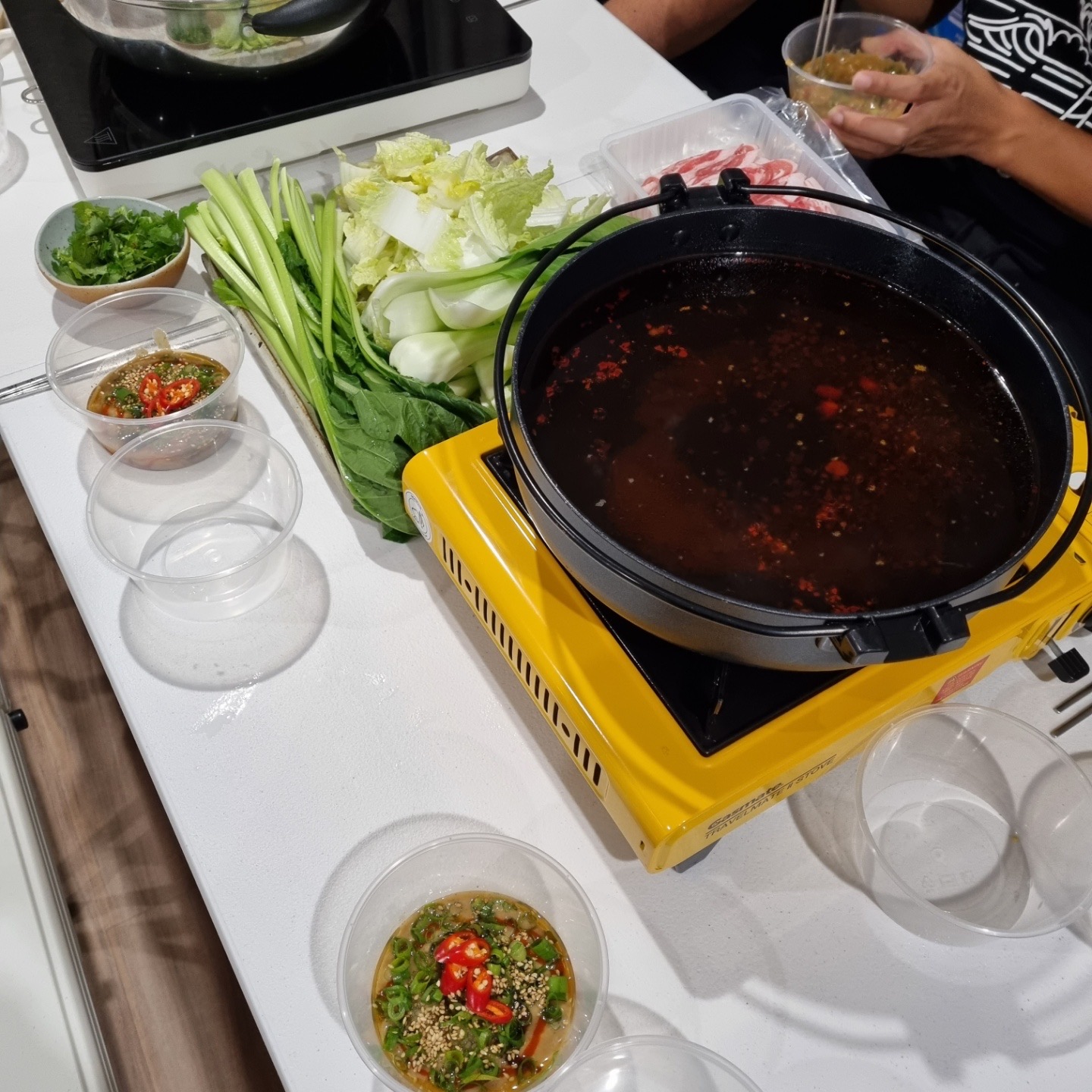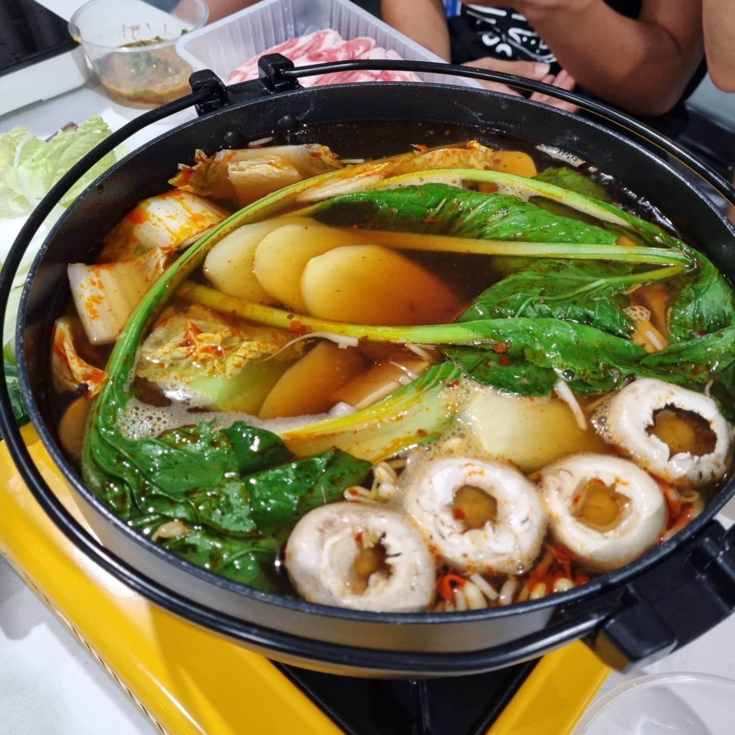 Chinese hot pot🌶🌶steemCreated with Sketch.lena8988 (51)in #chinesehotpot • 4 years ago 정기적 훠궈 수혈의 날ㅎㅎㅎ 간단하게 야채 육수에 간장, 중국식 고춧기름을 넣고 만든 육수! 소스는 땅콩 소스 베이스로 친한 언니가 만들어줌… 주변에 요리 잘 하는 사람있다는 게 정말 행복😍 Chinese hot pot! Veg broth with soy sauce and Chinese chill oil. We have to eat hot pot regularly. 🤣 #chinesefood #hotpot #chinese #food #foodrecipe #yummy