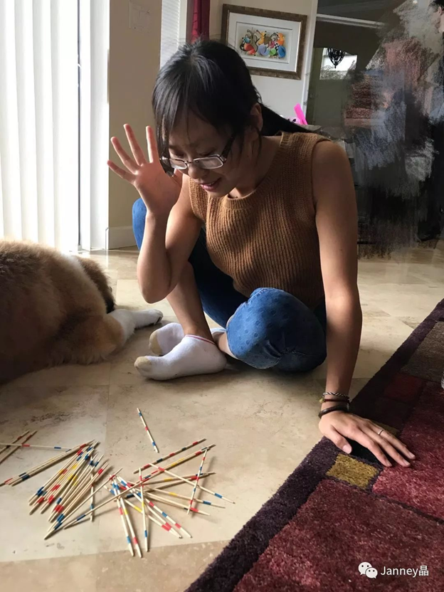 这个游戏对小朋友的眼手训练非常有益。在挑小棒的过程中是需要高度集中注意力和耐心的,也适合训练小朋友的耐心。今天我们三个大人在玩儿的时候,或坐着,或趴着,或蹲着,从各个角度考虑先挑哪支小棒,都特别投入。一会儿大笑,一会儿唏嘘。就像小孩子一样。我们会婆婆便跟公公开玩笑说,“我们以后就应该给孩子们买这种游戏,可以培养他们的耐心。”