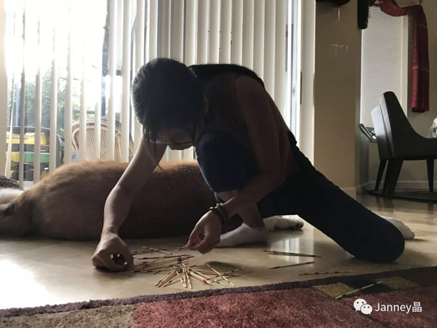抑制不住童年的记忆,于是我邀请老公,后来哥哥也加入一起玩挑小棒。他们两个都是第一次玩,于是我就教他们按我小时候玩的规则玩。但是游戏结束我再看说明时,发现这些彩色的小棒还有一些不同的规则。所以我就按照说明书给大家介绍一下小棒的玩法。