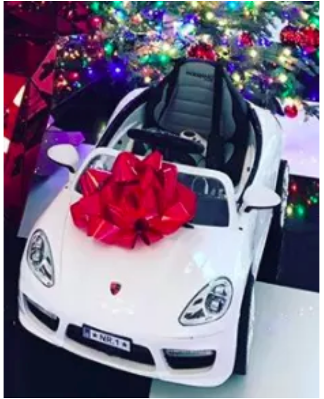 Now, if you ask me, this is just like all those years I asked my mom for a puppy for Christmas only to be given a Beanie Baby dog, but whatever. The toy Porsche is cute! Plus, she can always re-gift to one of the Kardashibabies.