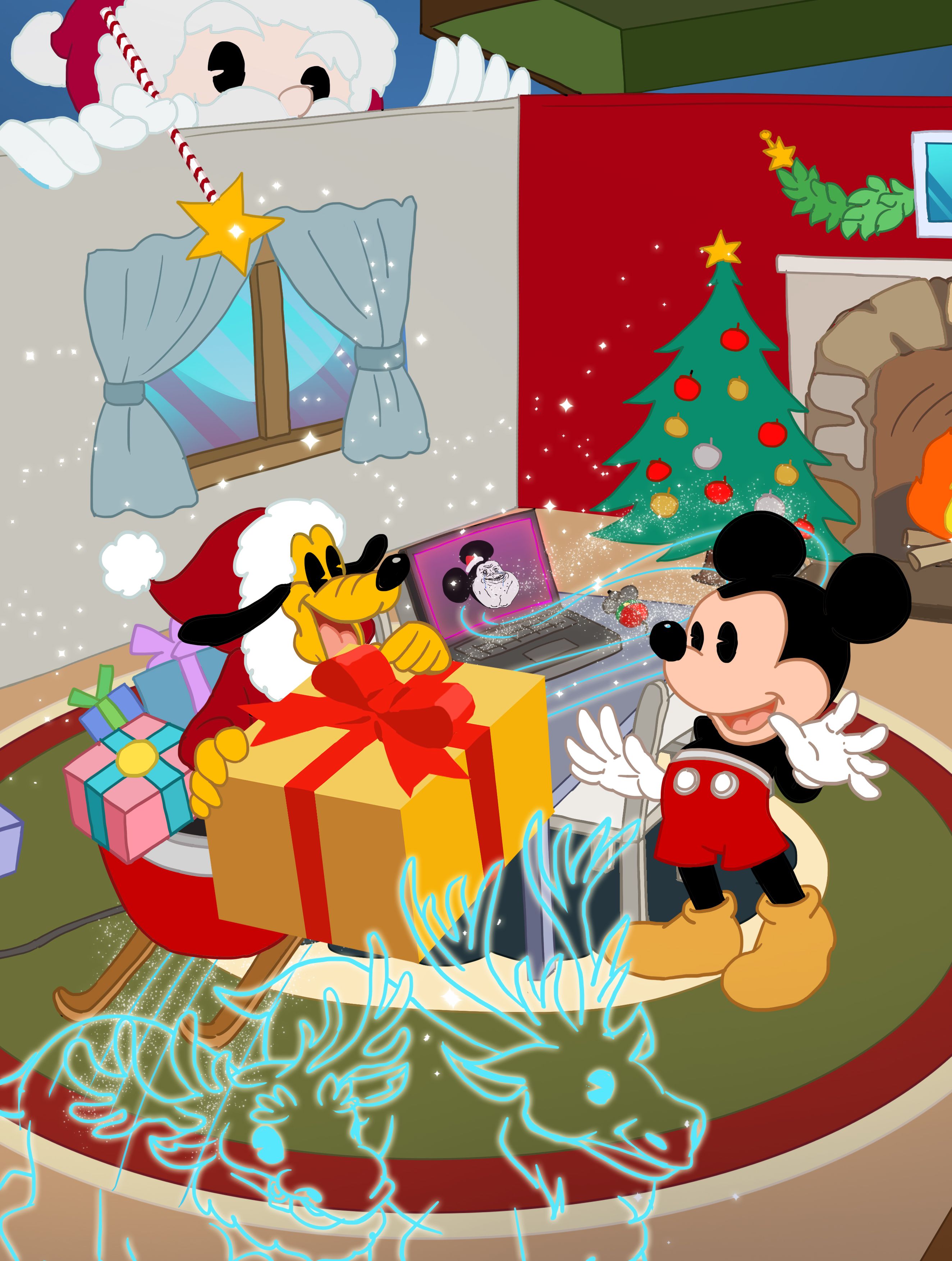 Mickey thought he will be spending his Christmas alone, but SURPRISE! Pluto came out from the laptop in Santa suit. This will be a lovely Christmas afterall. A magical one indeed.