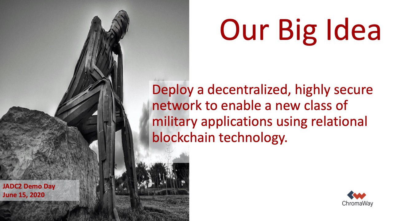 Watch for a fuller blog post on ChromaWay’s work with AFWERX/JADC2 following the June 15, 2020 finalist event. 👀