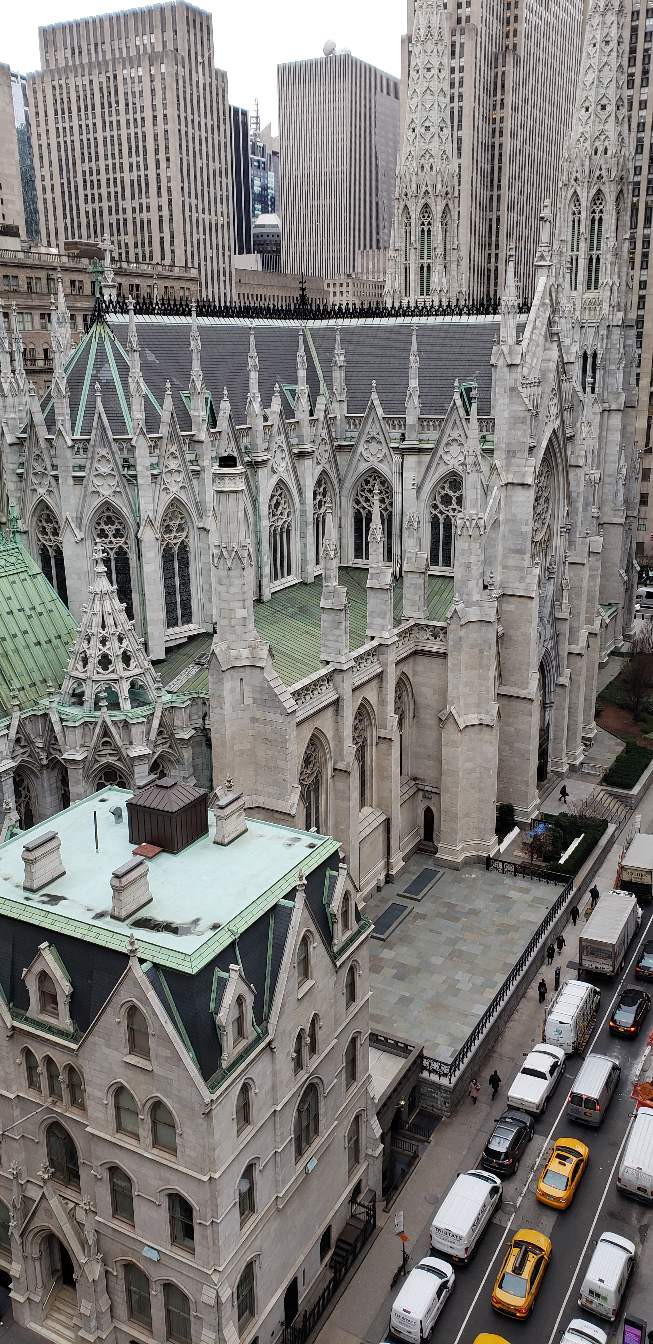 Famous buildings don't always have to be commercial or residential. They can also be a religious one. Saint Patrick's Cathedral in NYC is quite famous and a big tourist attraction. Its open to the public so all can see and capture how beautiful it is. It's also used for ceremonies for different groups and agencies. High school graduations, like mine did. This is view from above.