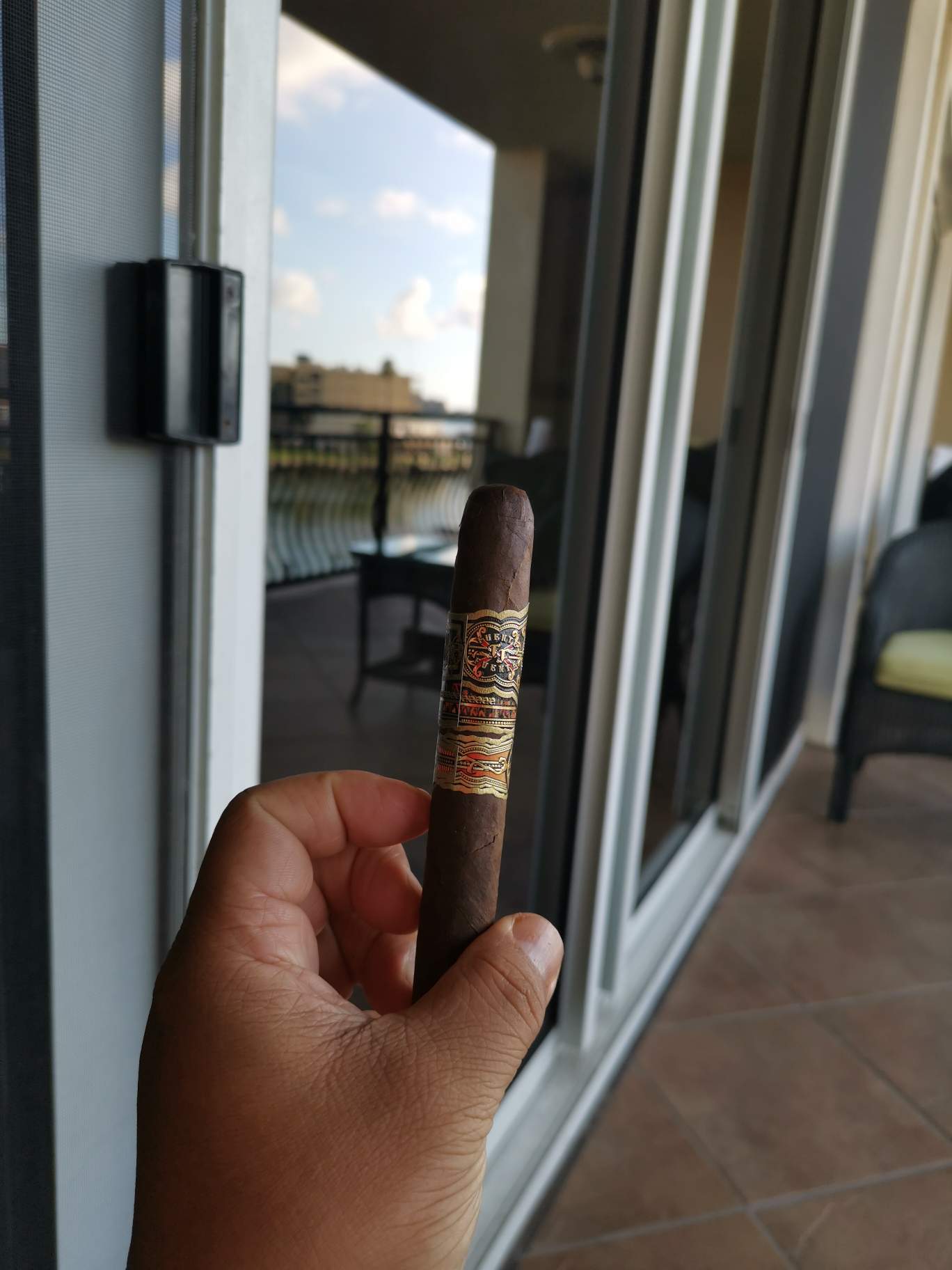 A special cigar that I really should have paired with a spectacular whisky, but I had just finished 2 racks of ribs with my friend and I wanted to have this cigar. It's so luxurious from the deep coffee smell and slightly oily feel that when I lit it up I had a sense of giddy excitedness, Christmas for kids like. The first puff was smooth with a bitter after taste, reminding me of a Nicaraguan leaf, plenty of smoke and even burn.