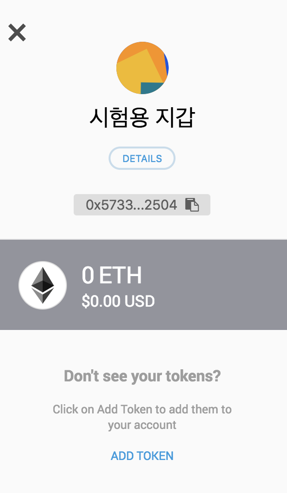 - 아래 그림과 같이 살짝 펼쳐지면서 아이콘들과 추가적인 정보들을 보여줍니다. (참고로 제가 주소를 지우서 주소 정보가 0x만 보입니다^^;;)