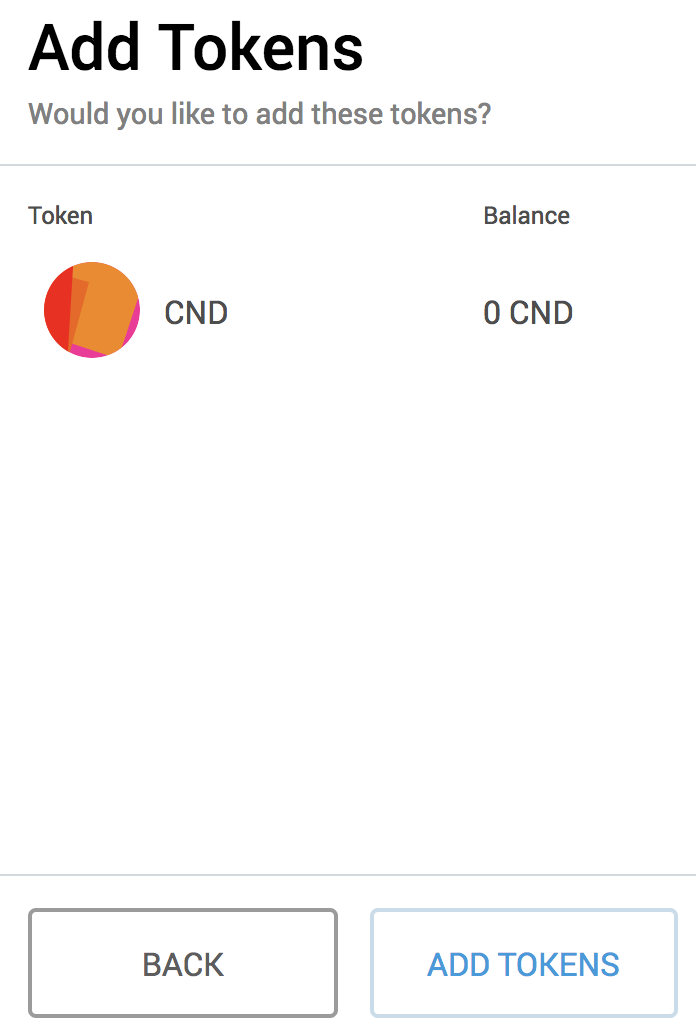 아래와 같은 화면이 나옵니다. 여기서 "ADD TOKENS"을 클릭합니다.