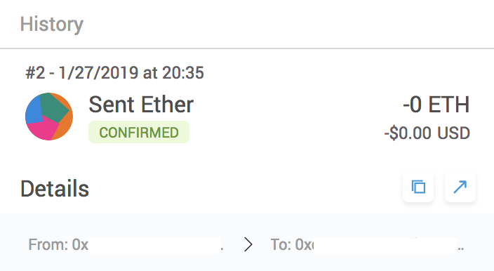 - 송금이 성공되면 메타마스크 홈화면 하단에 아래 그림과 같이 송금에 대한 History 정보가 추가됩니다. 그 항목을 클릭하세요.