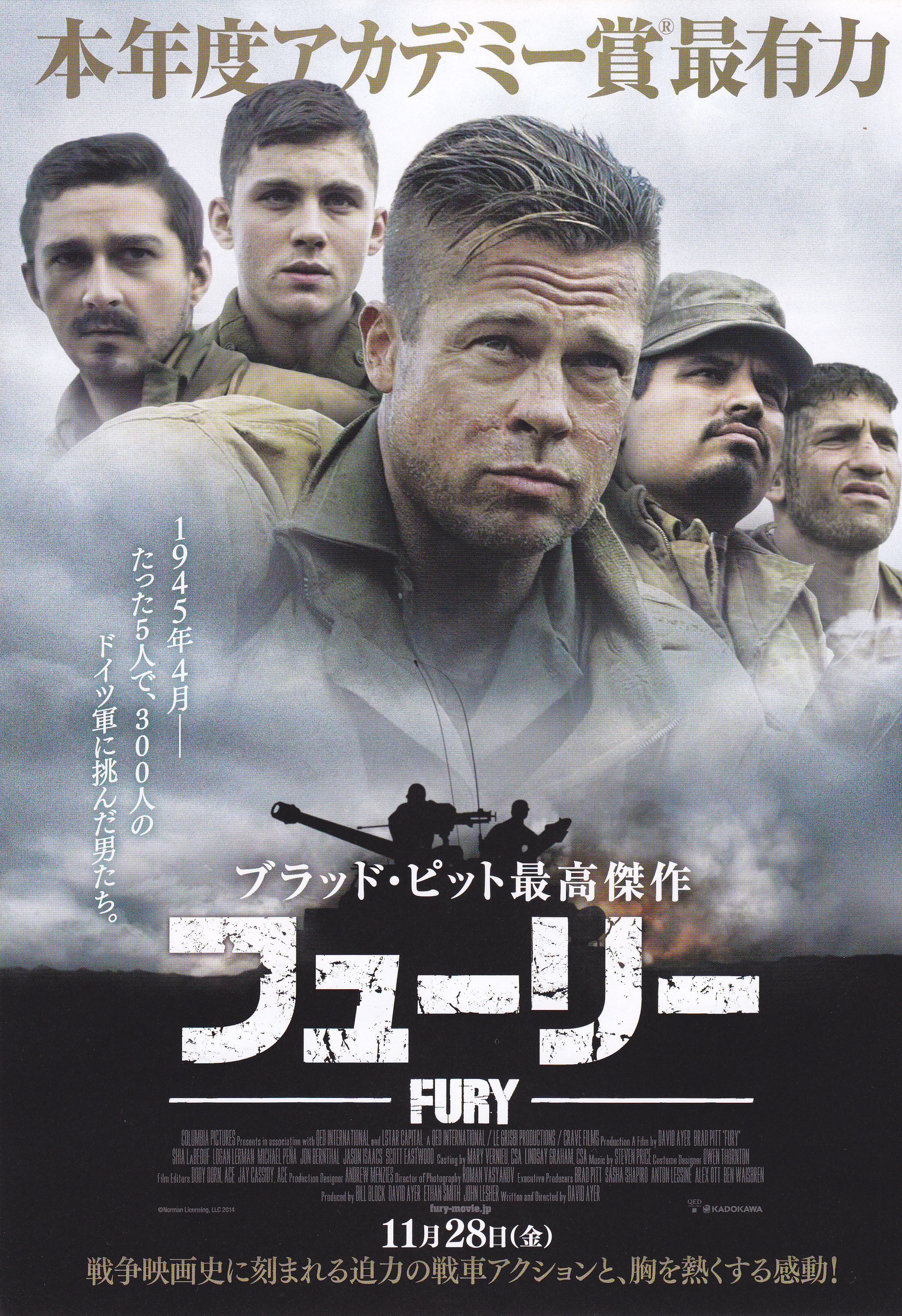Fury (2014) Japanese Chirashi Poster Art