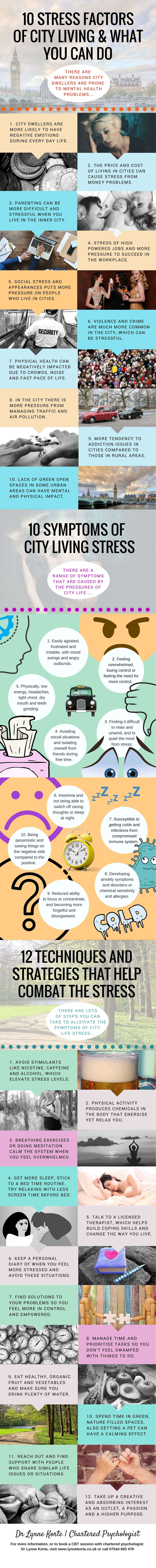 On the off chance that you don't know where to begin and things are beginning to get overpowering, the infographic will give you data on what you can do. Having worry in your regular daily existence is normal for everybody, except it's more typical to experience the ill effects of pressure and weight in the city. Being situated in London, you may profit by taking a gander at Dr Lynne Korte's site and checking whether you can book in a treatment session with her