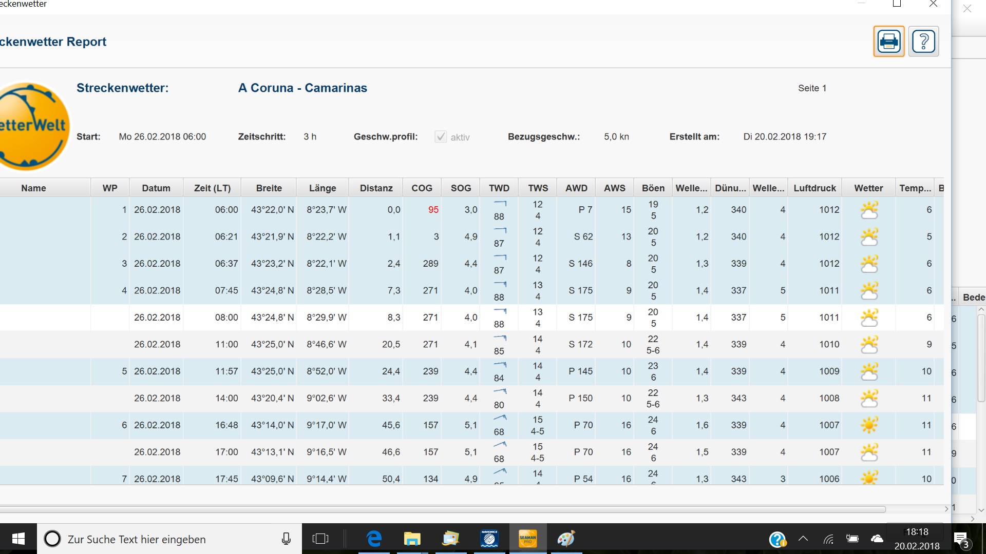 So as soon as it is here we can wait for the right weather and go south. Next stop shall be Camariñas, about 55 nautical miles to go. For this I check the weather report regularly. We have a software with which we can download weather data (so called grip files). A special feature is, that we can see how the weather is supposed to be on our tour. Most important wind speed and direction. In case the parcel arrives tomorrow we can start on thursday. Otherwise would next monday based on the current weather report the next possible day.