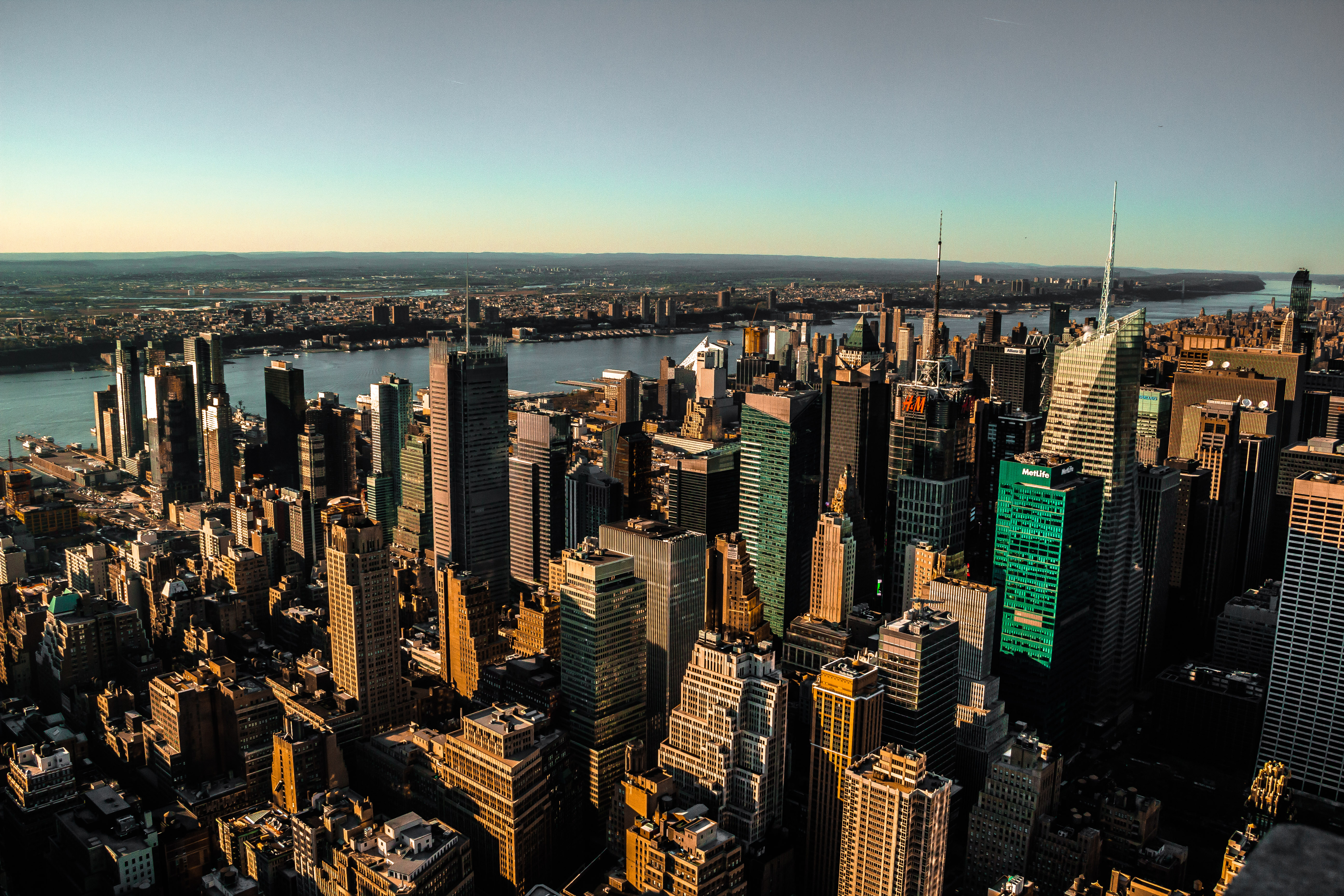 New York City from the Empire State Building during sunset hours.