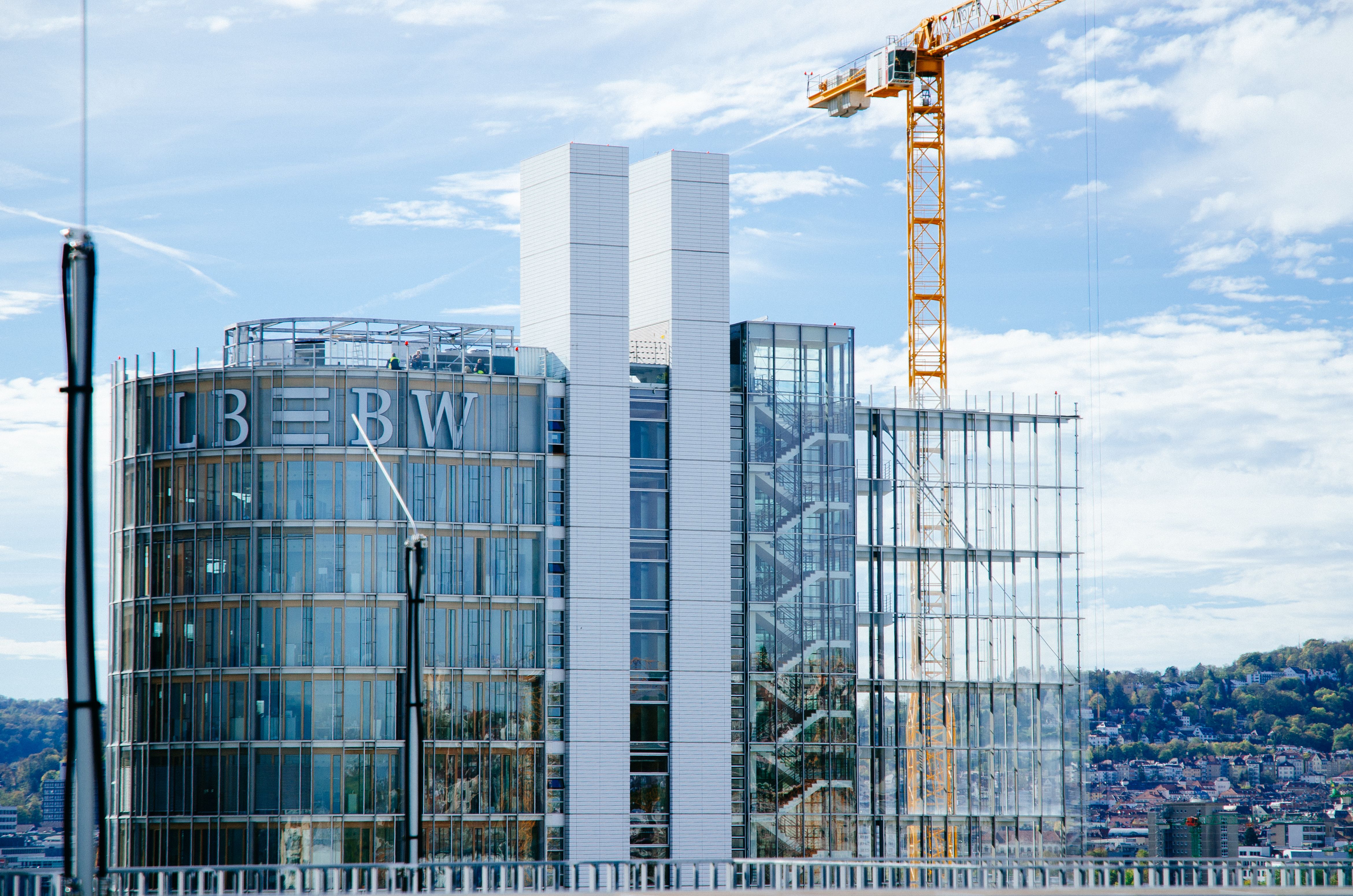 View from the top of the Stadtbibliothek Stuttgart.New BW bank building.