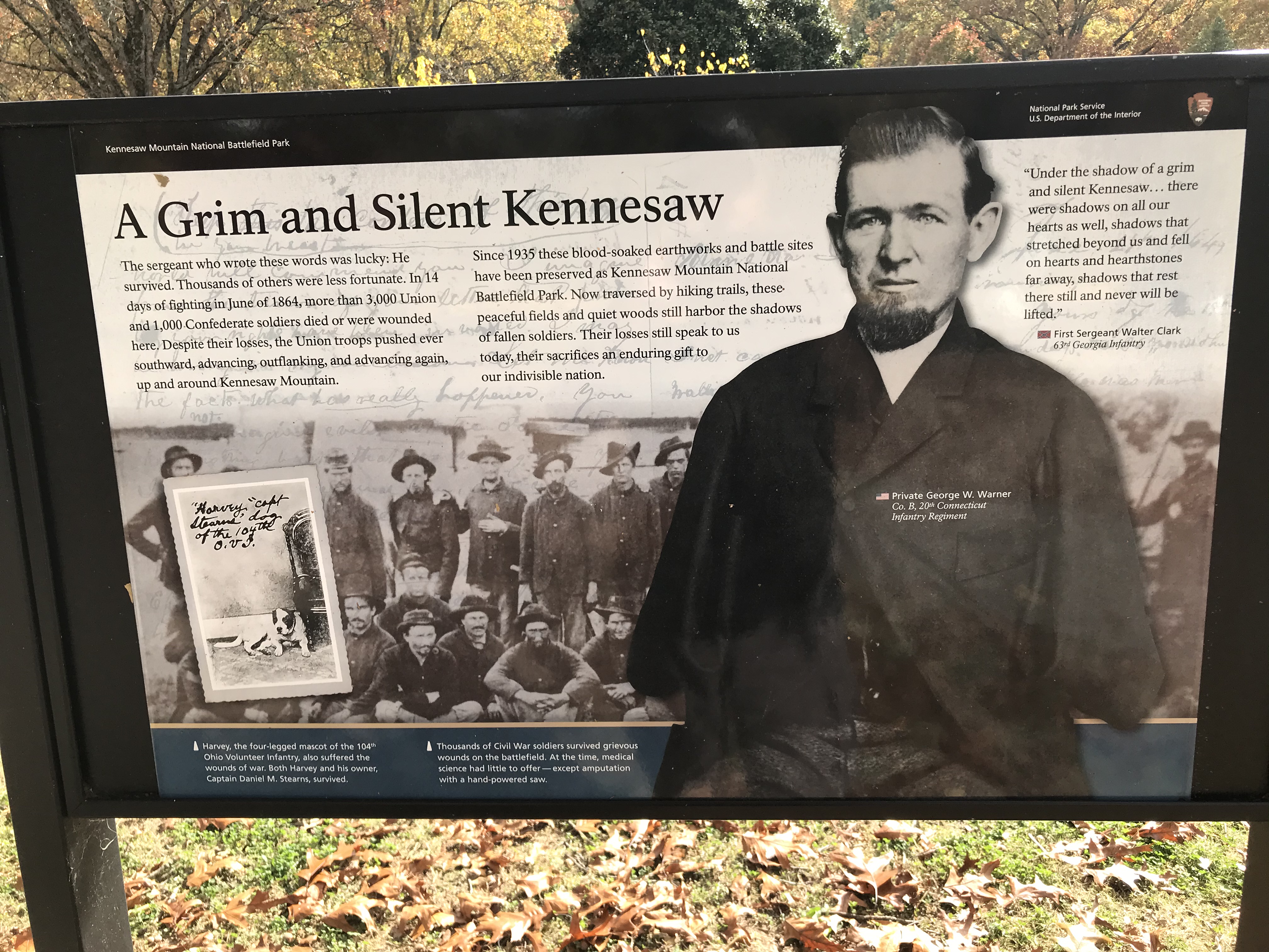 I’ve been walking these trails since moving to Kennesaw in the early 1970’s. I find there’s nothing better to clear one’s mind than to walk these grounds and trails and give thought to all the young men who died here while fighting for their beliefs.