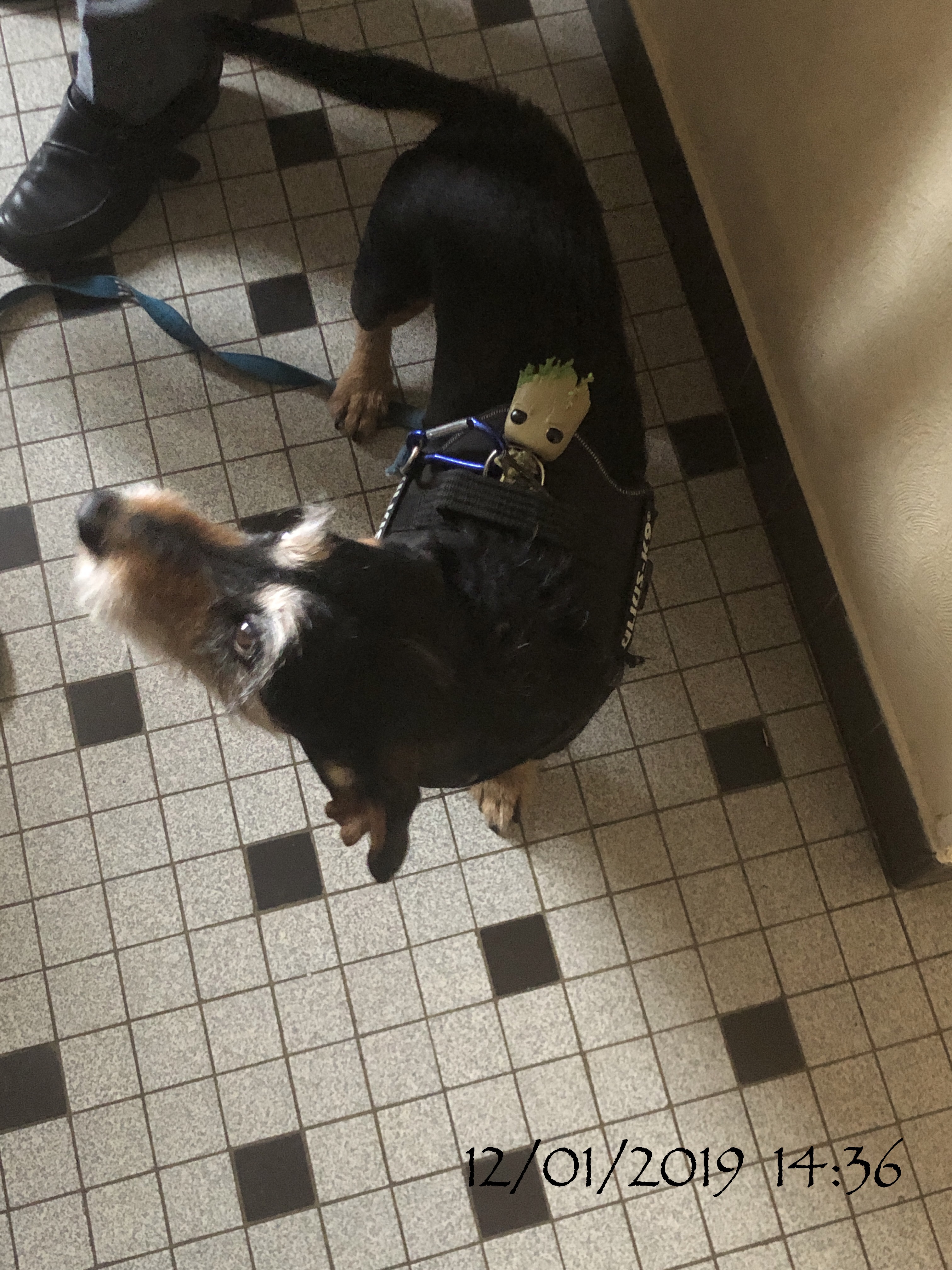 Alors me voilà ! Avec mon nouvel ami poilu vu que Rocket n’a pas pu venir